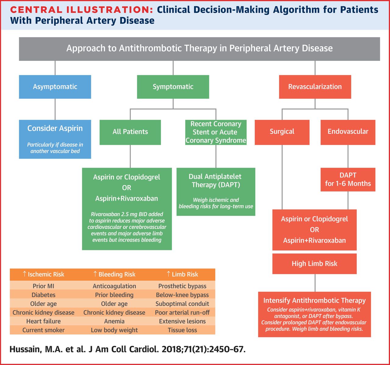 Figure 37.1: Algorithm for Rx of anti-thrombotic therapy in Peripheral Arterial Disease (Source: Hussain et al., 2018)