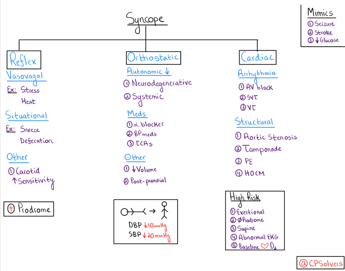 4 cardiac conditions to look for on ECG in all patients presenting with syncope (BLOWHard) Source:
